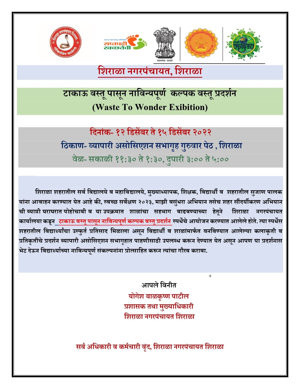 सर्व नागरिकांना कळविण्यात येते की, उद्या सोमवार दि 12/12/2022 रोजी सकाळी 11.30 वाजल्यापासून प्रदर्शनास सुरुवात होणार आहे , तरी सर्व नागरिक , पालक यांनी प्रदर्शनास भेट देऊन आपल्या विद्यार्थ्यांचा आनंद. अधिक वाचा…